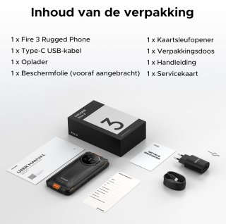 De Fire 3 is perfect voor wie een betrouwbare, robuuste telefoon nodig heeft die lang meegaat zonder opgeladen te hoeven worden — van vakmensen op de bouwplaats tot buitensporters en reizigers. Hij combineert duurzaamheid met praktische functies zoals NFC, HD‑streaming en uitgebreide opslagopties, allemaal in een compact en degelijk ontwerp.
